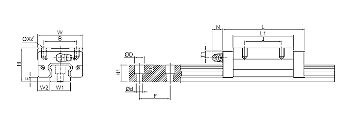 TBI直線導軌TRH-V高組裝四方型系列規格尺寸表