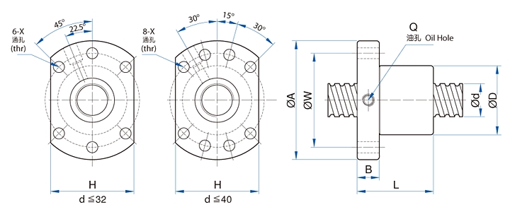TBI滾珠絲桿SFU6320的安全使用: 潤滑為使滾珠絲杠副充分發揮機能,在其工作狀態下,必須潤滑,潤滑方式主要有以下兩種: TBI絲杠SFU6320在使用時應注意以下事項: a.滾珠螺母應在有效行程內運動,必要時在行程兩端配置限位,以避免螺母約程脫離絲杠軸而使滾珠脫落。 安裝TBI滾珠絲杠副在安裝時應注意以下事項: aTBI滾珠絲杠副僅用于承受軸向負荷。徑向力、彎矩會使滾珠絲杠副產生附表面接觸應力等負荷,從而可能造成絲杠的永久性損壞。因此,滾珠絲杠副安裝到機床時,應注意:(1)絲杠的軸線必須和之配套導軌的軸線平行,機床的兩端軸承座與螺母座必須三點成一線;(2)安裝螺母時,盡量靠近支撐軸承;(3)同時安裝支撐軸承時,盡量靠近螺母安裝部位。 b.TBI滾珠絲杠安裝到機床時,請不要把螺母從絲杠軸上卸下來。如必須卸下來時要使用輔助套,否則裝卸時滾珠有可能脫落。螺母裝卸時應注意以下幾點:(1)輔助套外徑應小于絲杠底徑0.1-0.2mm;(2)輔助套在使用中必須靠緊絲杠螺紋軸肩;(3)卸裝時,不可使用過大力以免螺母損壞;(4)裝入安裝孔時要避免撞擊和偏心。 |