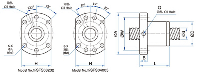 SFS 高速靜音型滾珠絲桿 (DIN 69051 FROM B) 法蘭型雙切邊單螺母