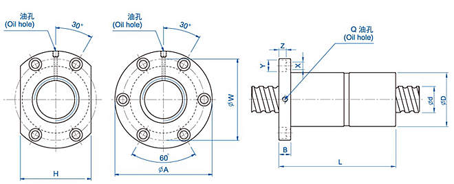 主要參數有:TBI絲桿外徑,導程。這兩個參數決定了滾珠絲桿的負載(負荷及速度),它們是標準值,通過上面說的條件進行計算選擇。還有一個在選擇絲桿進行考慮的參數:滾珠列數(負載回路列圈數也決定負載能力)。其它的外形尺寸,滾珠螺母是依據絲桿、列數、循環方式、安裝形式來確定,桿端尺寸及形式主要取決于安裝形式。
