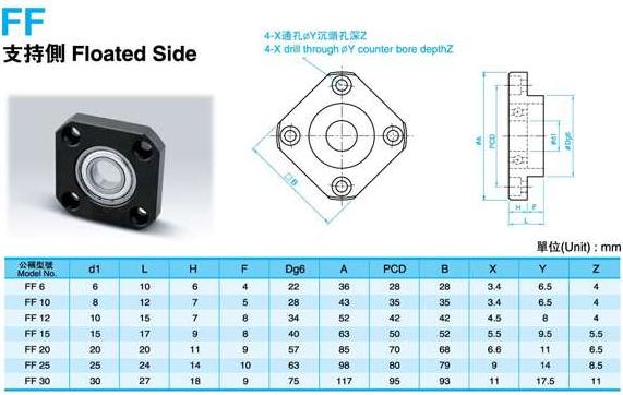 FF圓型支撐側(cè)系列:FF06、FF10、FF12、FF15、FF20、FF25、FF30
