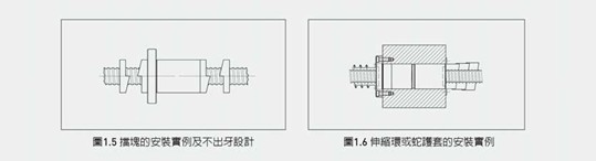 (6)在螺桿兩端應該安裝防撞器或不出牙設計以避免螺帽過行程,導致螺桿的破 壞,如圖1.5。
