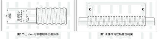 (11)當您需要與螺桿軸分離并再組合時,必須透過一個外徑小于螺桿根徑0.2~ 0.4 mm的管子,參考公式M37接于螺桿出牙的一端,將螺帽旋出,套內管中 參照圖1.9。